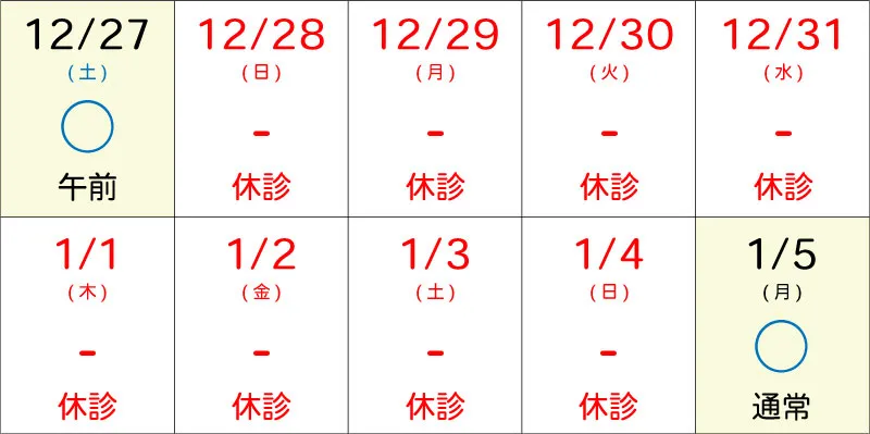 【12/28-1/4】年末年始の休診日